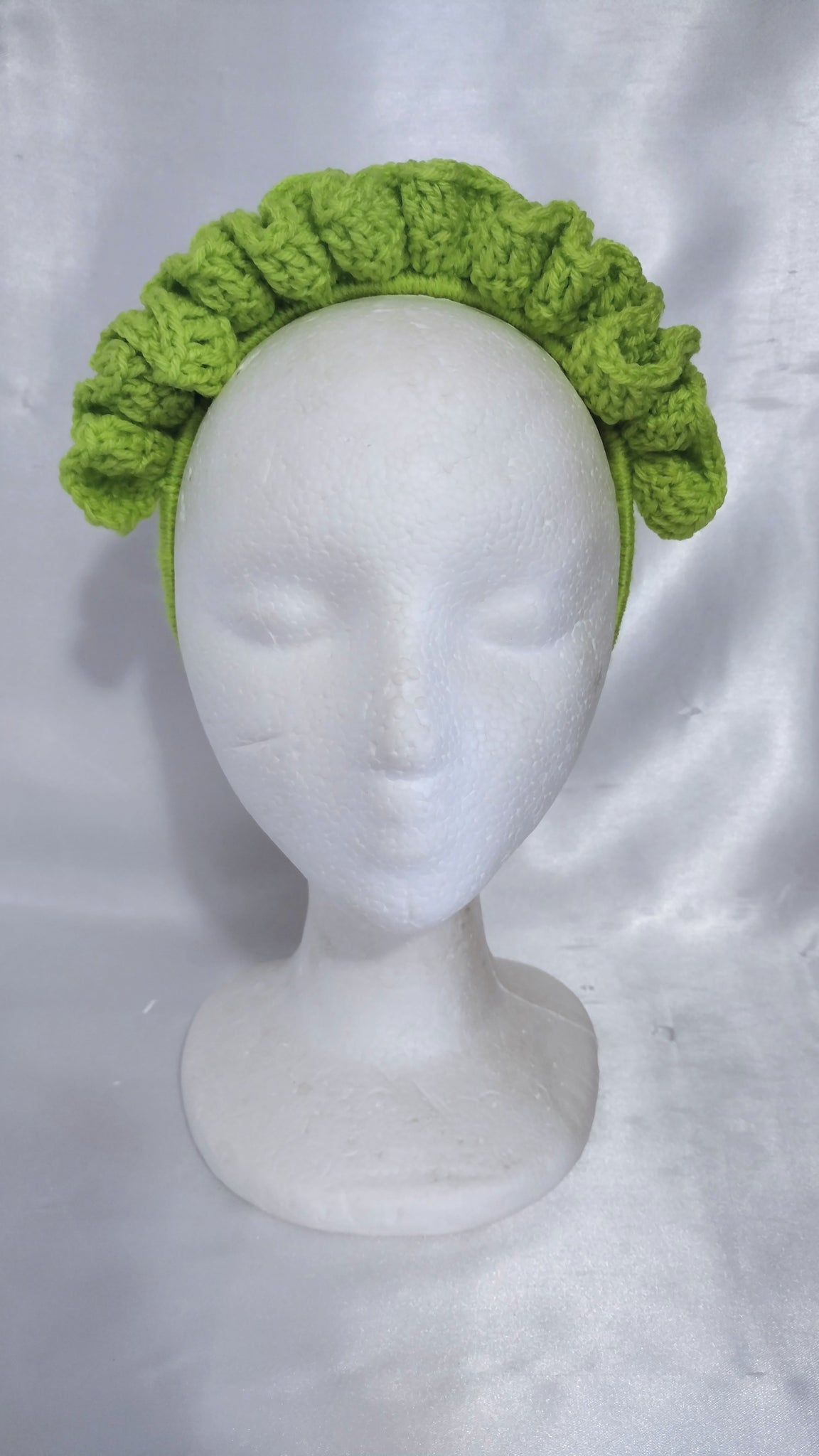 Ruffle Headbands are handmade with 100% Acrylic Big Twist yarn, with two rows of ruffles on the headband.