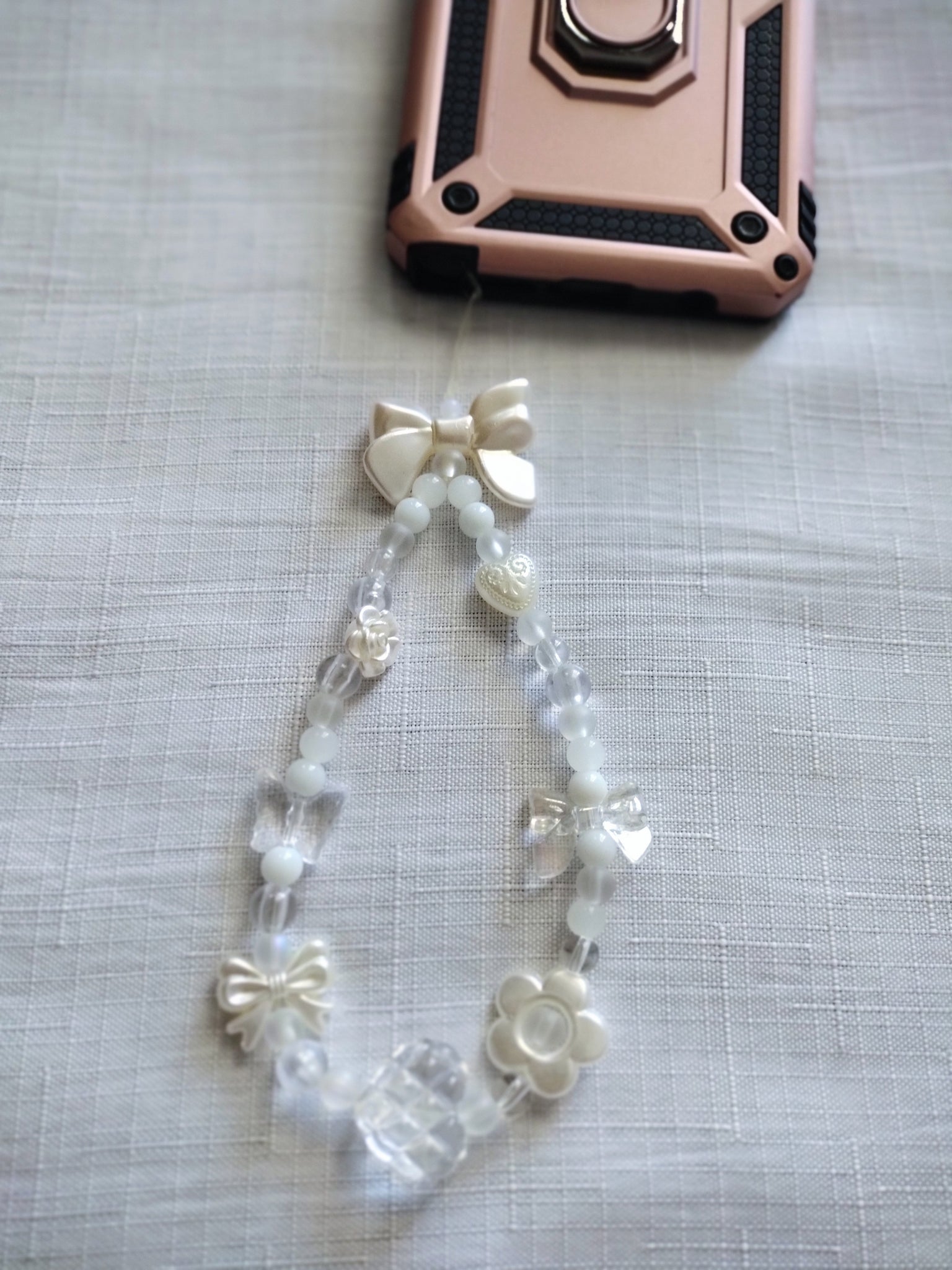 Phone Charms are handmade with elastic string using different types of beads. Phone Charms are 7.5" inches long. Charms are great way to style your phone case or your purse and it is also a great gift to give someone. Please do not use phone charm as a bracelet and let your phone hang.